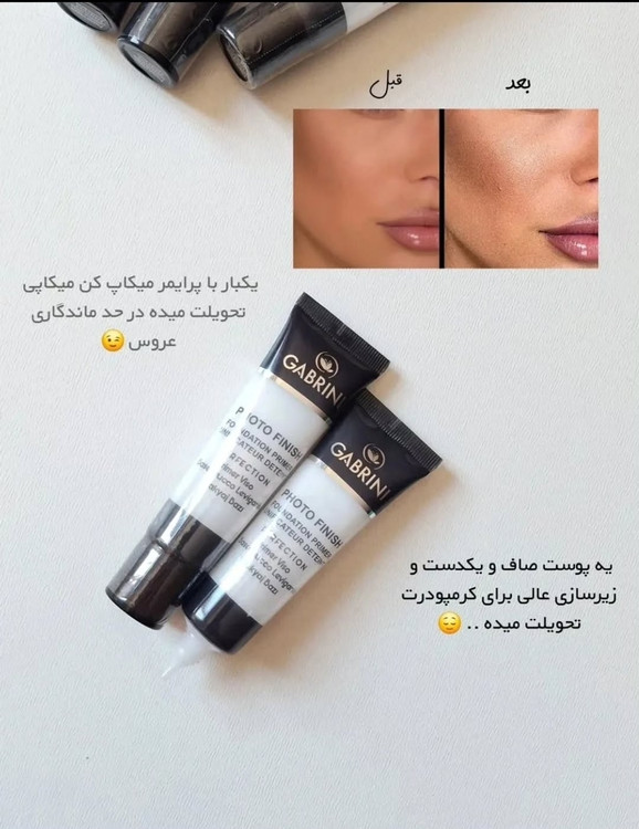 🥹پرایمر گابرین اگه کرمپودرتون روی پوستتن ماندگاری نداره ماسیده میشه و ناهمواره زیر ساز پرایمر گابرینی راه حلشه .